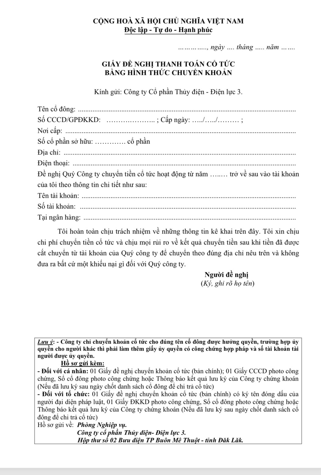 Công ty Cổ phần Thủy điện – Điện lực 3 thông báo sản lượng và ...